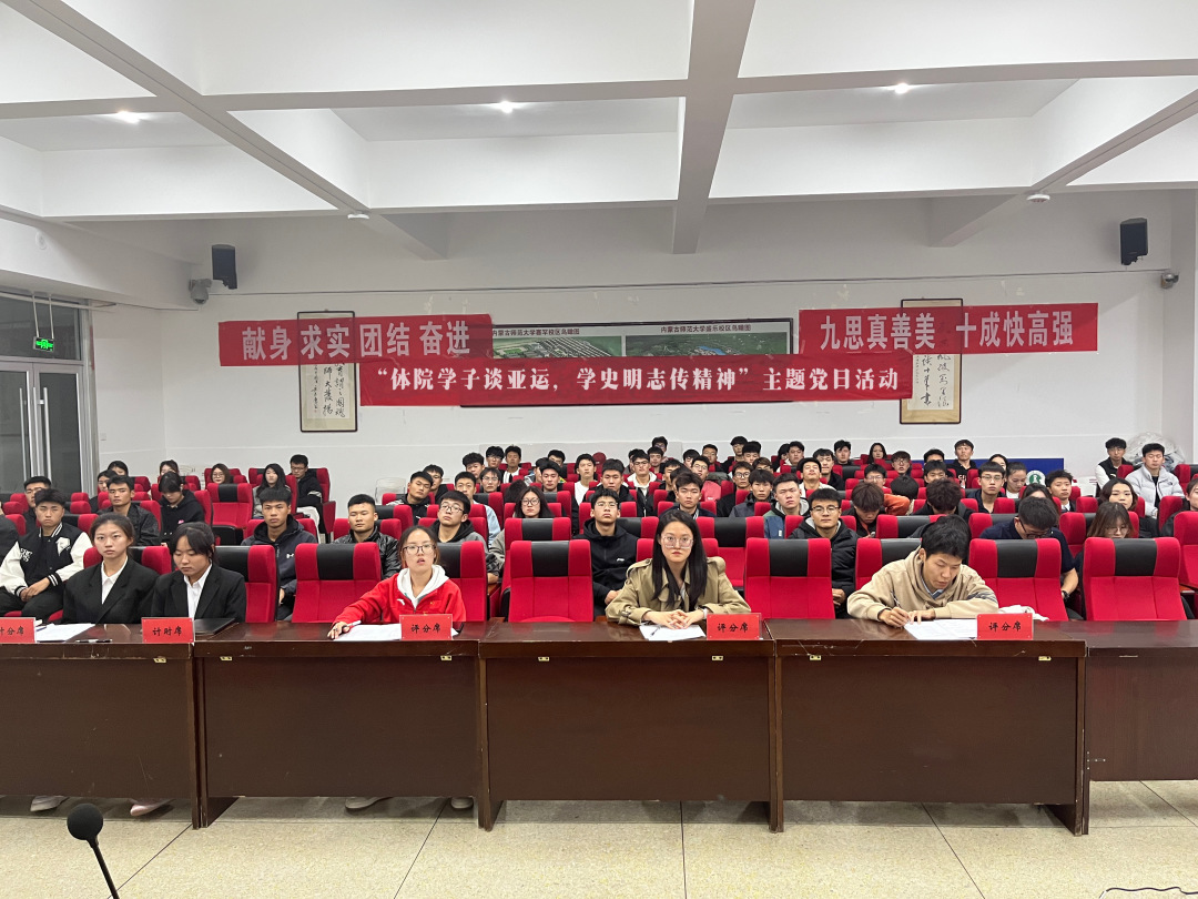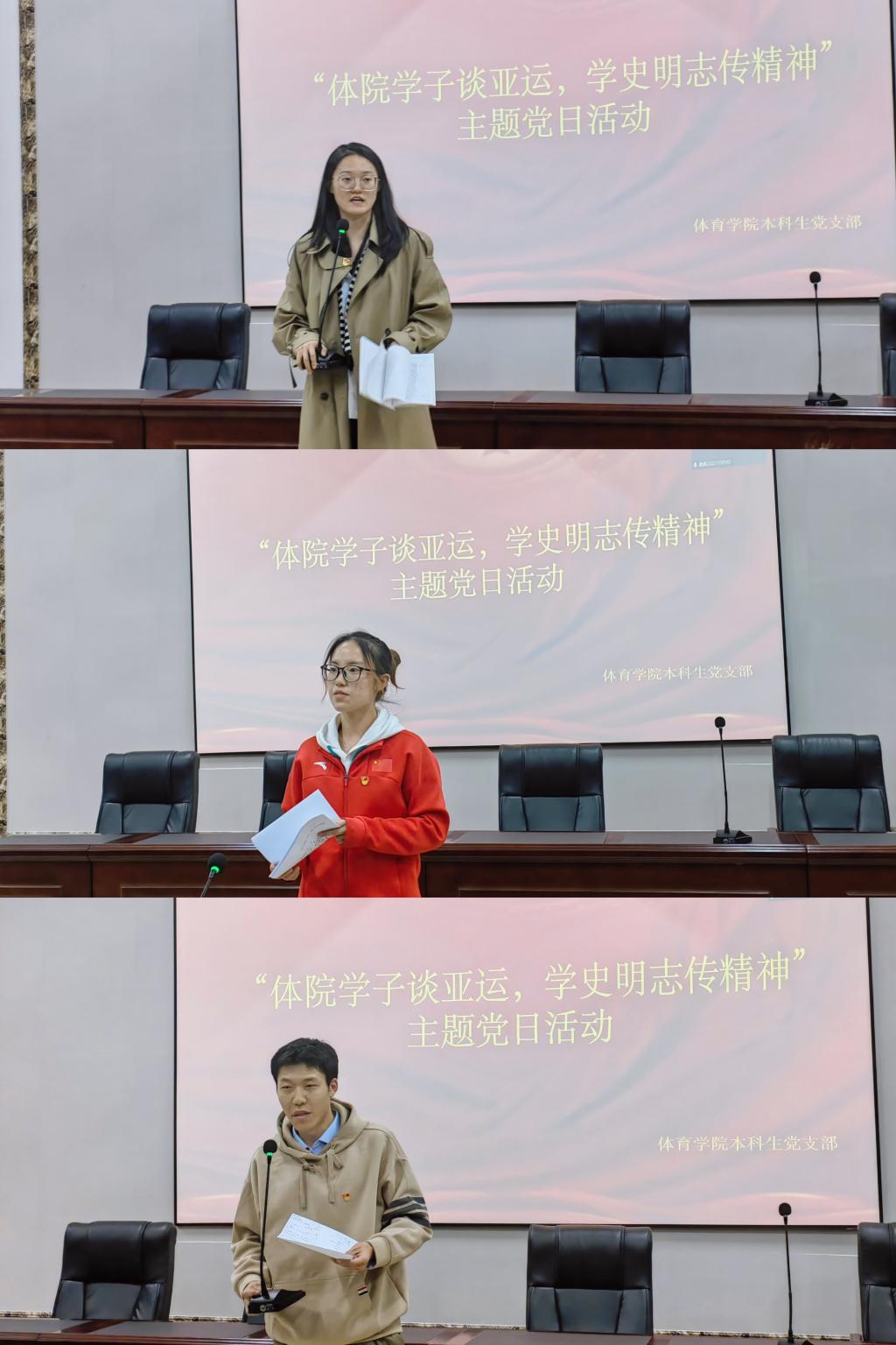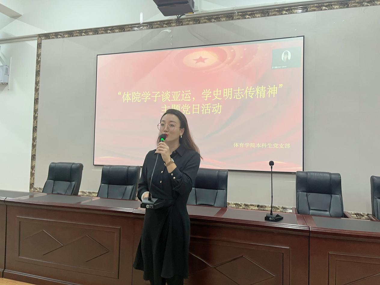 亚运精神承载着团结,友谊和进步的理念,它教会我们团结友爱,追求进步,超越竞争。作为新时代青年、作为中坚力量的入党积极分子,要坚持胸怀天下,树立全球视野,让爱国主义成为青春底色,让亚运精神薪火相传。yl6776永利集团本科生党支部紧密结合时事及学院特点,于2023年10月29日举办了“体育学子谈亚运,学史明志传精神”主题党日活动,让积极分子在谈亚运的过程中了解亚运会相关知识,激发学生的爱国情怀。