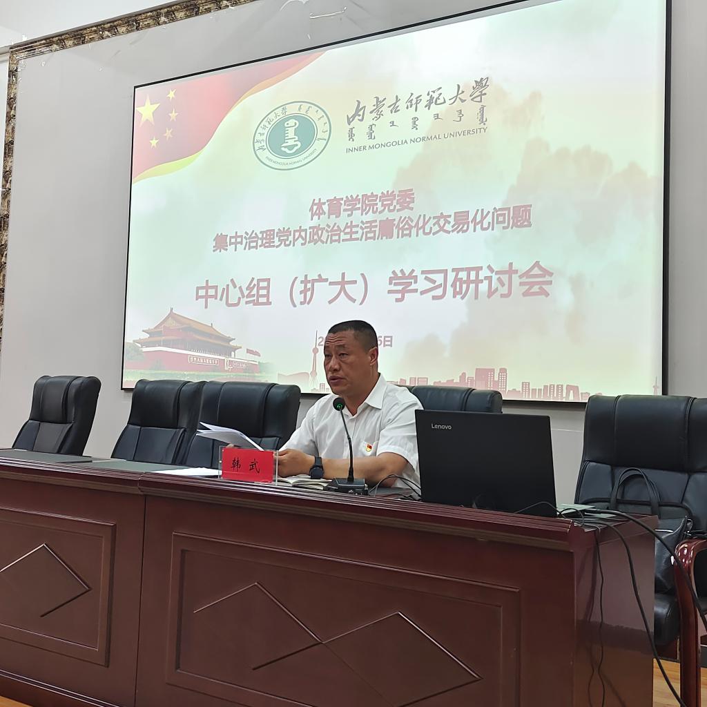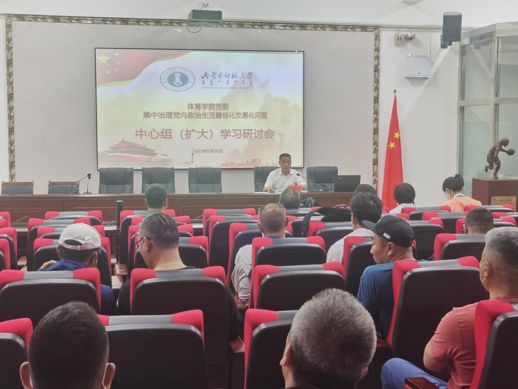 5月26日下午,yl6776永利集团党委召开集中治理党内政治生活庸俗化交易化问题中心组(扩大)学习研讨会,学院党委委员、科级以上干部及全体教工党员参加,会议由我院党委书记韩武主持。
