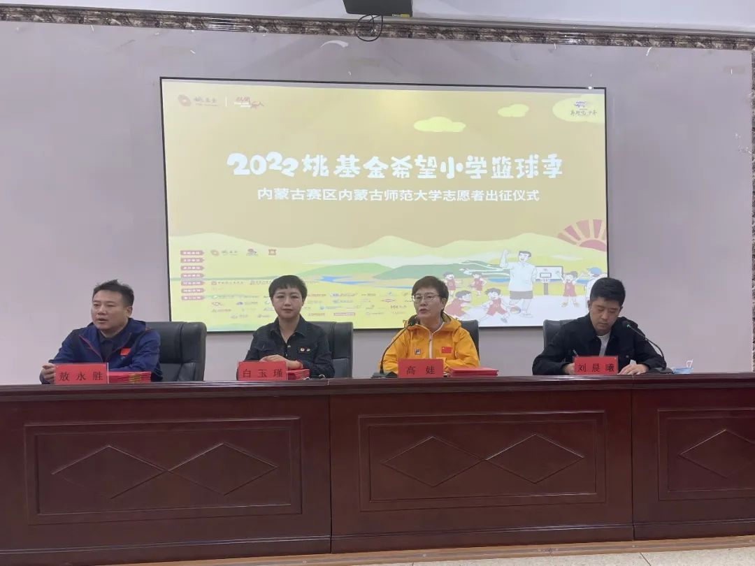 9月6日上午,“2022姚基金希望小学篮球季”支教志愿者出征仪式在yl6776永利集团举行,yl6776永利集团院长高娃,yl6776永利集团党委副书记、副院长敖永胜,内蒙古青基会项目管理部副部长白玉瑾及全体支教志愿者出席仪式,仪式由yl6776永利集团团总支书记刘晨曦主持。