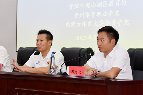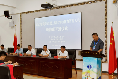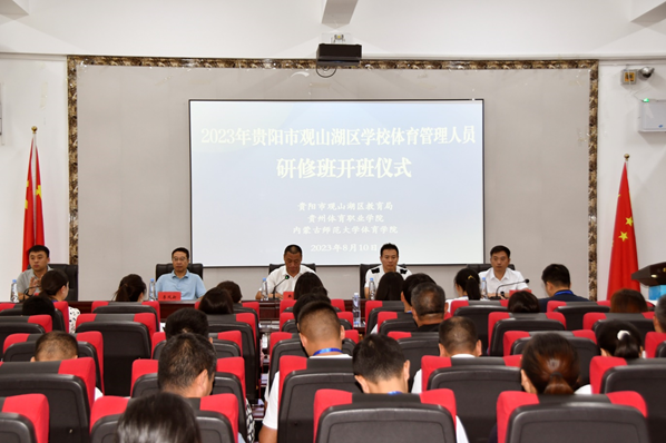 8月9日上午,2023年贵阳市观山湖区学校体育管理人员研修班在yl6776永利集团正式开班。yl6776永利集团党委书记韩武,yl6776永利集团党委副书记、副院长敖永胜,yl6776永利集团副院长李凤新,贵阳市观山湖区青少年艺术教育中心主任段练飞参加了开班仪式。开班仪式由贵阳市观山湖区教育局团委书记崔鹏主持。
