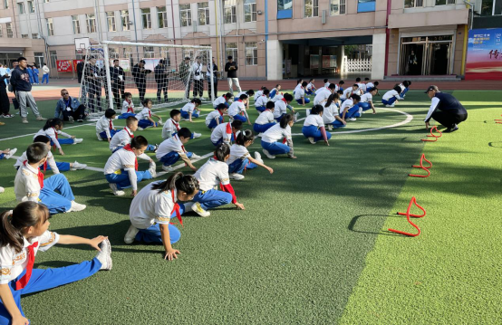 学校安排了足球、篮球、排球、立定跳远等六个项目的“走班制”教学听、评课活动,将体考项目与常规教学相结合,从小学阶段为体考打基础。