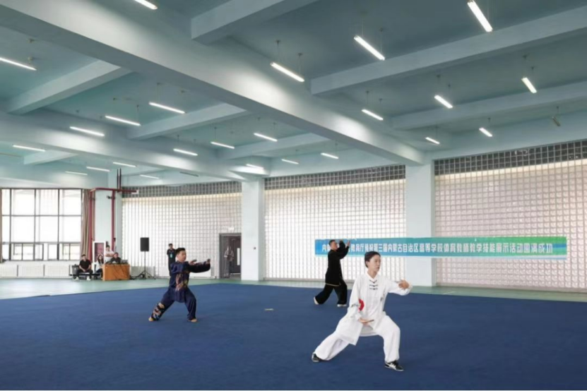 高校体育教师教学技能展示活动是我区学校体育工作的一项品牌活动。本次活动由内蒙古自治区教育厅主办、内蒙古大学和呼和浩特职业学院承办。展示活动分为网络评审与现场测试两个环节,网络评审项目为教学设计与教学实践,现场测试项目为体能与专项技能。