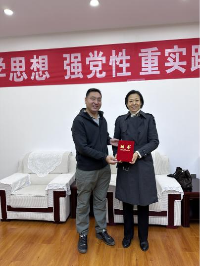 在聘任仪式上, 体育教育系主任孟克满都胡、运动训练系主任贾佳分别为教学督导员霍瑾、佟立升颁发聘证书。